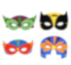 Grappige superheldenmaskers van zacht schuimmateriaal in vier verschillende designs. Hiermee kunnen jij en je vrienden zich verkleden als superhelden op je kinderfeestje. De maskers zitten comfortabel en blijven goed op hun plek zitten met behulp van een elastische band. De maskers worden ongesorteerd en per stuk verkocht.