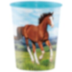 Souvenirbeker met een prachtige paardenafbeelding. De beker is een leuk cadeau voor je vrienden tijdens het kinderfeestje en kan ook gebruikt worden als alternatief voor uitdeelzakjes. De beker heeft een inhoud van ongeveer 4,7 dl.