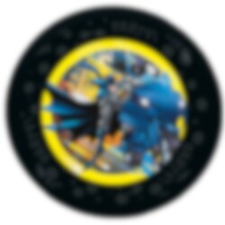 Geef het kinderfeestje een stoere superheldensfeer met deze sterke kunststof borden met Batman. De afbeelding toont Batman op zijn Batcycle in Gotham City, omringd door felle kleuren en een zwarte rand met PARTY-opdruk, wat zorgt voor een krachtige en speelse uitstraling op tafel.