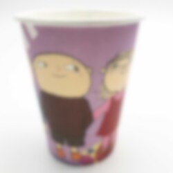 8 papieren bekertjes met grappige motieven van Alfons, Milla en Viktor die de verjaardag van Alfons vieren uit de boeken van Gunilla Bergström over Alfons Alfrink. De bekertjes zijn ongeveer 10 cm hoog en hebben een inhoud van ongeveer 200 ml.