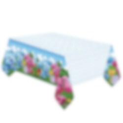 Papieren tafelkleed met kleurrijke afbeeldingen van de karakters uit de serie Blue's Clues. Het tafelkleed is 120 x 180 cm groot.