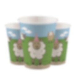 8 papieren bekers met schattige afbeeldingen van boerderijdieren – perfect voor het kinderfeestje met boerderijthema. De bekers zijn ongeveer 10 cm hoog en hebben een inhoud van 266 ml, wat ze tot een praktische en stijlvolle aanvulling op de tafelschikking maakt.