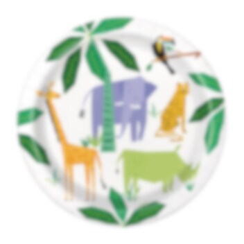8 papieren bordjes met schattige jungle-diermotieven. Ideaal voor een kinderfeestje met een junglethema. De bordjes hebben een diameter van 22 cm.