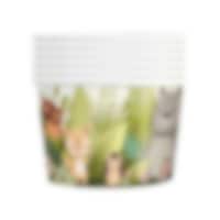 6 kleine ijsbekers in mooie kleuren met schattige afbeeldingen van verschillende bosdieren. De bekers zijn perfect om ijs, snoep, snacks of andere lekkernijen in te serveren. Ze hebben een inhoud van 150 ml en een afmeting van 6 x 7 cm. Gemaakt van karton.