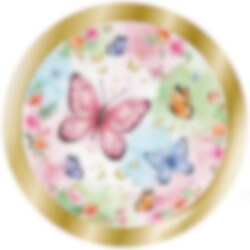 Deze prachtige papieren borden met gouden rand en een sierlijk vlindermotief geven elke tafel een magische uitstraling. Perfect voor een feest met vlinderthema. De borden hebben een diameter van 23 cm en worden verkocht per 8 stuks.