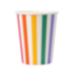 8 stijlvolle papieren bekertjes met strepen in mooie kleuren. De bekertjes zijn ongeveer 10 cm hoog en hebben een inhoud van ongeveer 250 ml. Trakteer je vrienden op een lekker drankje in deze leuke bekers.
