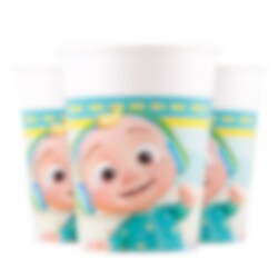 8 papieren bekers met een leuke afbeelding van de karakters in Cocomelon. Stijlvolle bekers om te serveren als het tijd is voor een kinderfeestje.