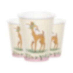 8 papieren bekers in schattige kleuren en met motieven van een hert en boomtakken met bladeren. Leuk tafelaccessoire voor het kinderfeestje met Herten kleintje als thema. De bekers zijn ongeveer 10 cm hoog en hebben een inhoud van ongeveer 256 ml.