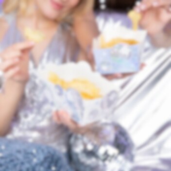 Serveer snacks in stijl met deze glinsterende popcornbekers met discoprint. De fonkelende discoballen en sterren zorgen voor een feestelijke sfeer, perfect voor dans, plezier of een gezellige filmavond. De bekers zijn gemaakt van karton en zijn 13,5 x 8,5 cm groot – ideaal voor popcorn, chips of snoep voor elke gast.