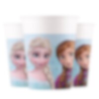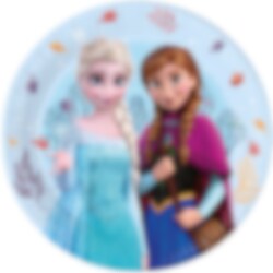 8 papieren borden met prachtige afbeeldingen van Anna en Elsa uit de Disneyfilm Frozen. Zet ze op tafel voor een vrolijk Frozen-feestje met al je vriendjes en vriendinnetjes.
