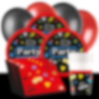8 papieren bordjes in zwart en rood met coole game-afbeeldingen. De bordjes hebben een diameter van 23 cm en zijn gemaakt van FSC-gecertificeerd papier. Perfect voor een gaming-thema kinderfeestje!