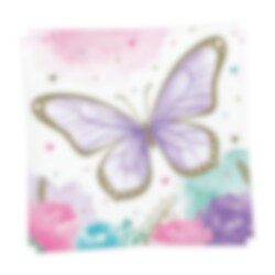 16 kleine servetten met afbeeldingen van kleurrijke vlinders. De servetten zijn 2-laags en hebben een uitgevouwen formaat van 25 x 25 cm.