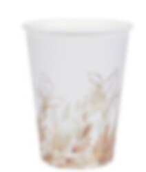 10 papieren bekers met een mooi patroon van gebladerte in neutrale kleurtinten en goudgefolieerde details in reliëf. De bekers zijn ongeveer 10 cm hoog en hebben een inhoud van ongeveer 270 ml.