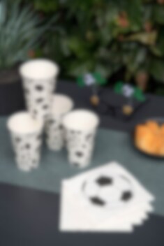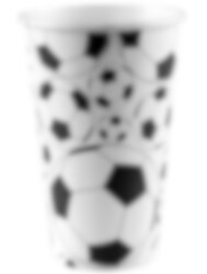 Grote papieren bekers in voetbalthema die 500 ml bevatten.