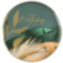 10 exclusieve papieren bordjes met bladmotieven in groene kleurtinten en goud, en de tekst 'Happy Birthday to you!' in goud. De borden hebben een diameter van 22,5 cm.