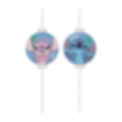4 papieren rietjes met schattige afbeeldingen van Lilo & Stitch. De rietjes zijn ca. 21 cm lang en de afbeeldingen hebben een diameter van ca. 6,5 cm.