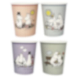 8 papieren bekers met charmante afbeeldingen van de Moomins, die jouw kinderfeestje omtoveren tot een betoverende ervaring in de Moominvallei.