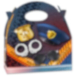 Deze feestbox met politiethema is perfect voor kleine detectives en misdaadbestrijders! Vul het met lekkernijen en verrassingen. Gemaakt van karton, eenvoudig te monteren en meet 20 x 16 cm. Verkocht per stuk.