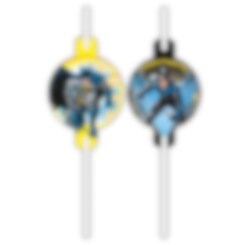 4 kartonnen rietjes met leuke afbeeldingen van Batman en Nightwing/Robin uit de DC Comics-serie over Batman. Perfect om de tafel mee te dekken voor een Batman-geïnspireerd kinderfeestje. De rietjes zijn ongeveer 21 cm lang en de afbeeldingen hebben een diameter van ongeveer 6,5 cm.