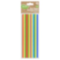 24 kartonnen rietjes in verschillende regenboogkleuren. De rietjes zijn ongeveer 20 cm lang.