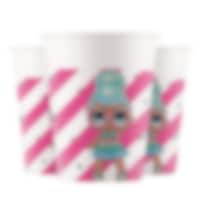 8 papieren bekers met roze tinten en met motieven van Queen Bee en haar vrienden uit de LOL Surprise poppenserie. Een stijlvolle toevoeging aan de feestsetting. De bekers zijn ongeveer 10 cm hoog en hebben een inhoud van ongeveer 200 ml.