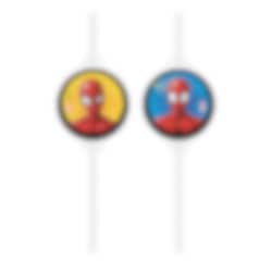 4 papieren rietjes met coole afbeeldingen van Spiderman. Perfect om neer te zetten voor je Spiderman kinderfeestje. De rietjes zijn ongeveer 21 cm lang en de afbeeldingen hebben een diameter van ongeveer 6,5 cm.