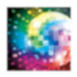 16 kleurrijke servetten in het discothema. De servetten hebben 2 lagen en zijn uitgevouwen 33 x 33 cm.