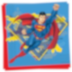 20 servetten met coole afbeeldingen van Superman. De servetten hebben 2 lagen en zijn uitgevouwen ongeveer 33 x 33 cm.