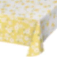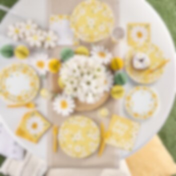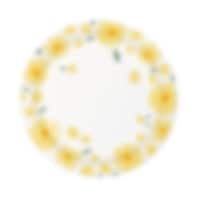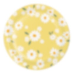 8 papieren borden in geel met mooie motieven van bloemen. De borden hebben een diameter van 23 cm.