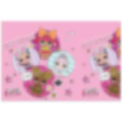 Tafelkleed van kunststof in roze tinten en met motieven van de Glitterati clubleden van LOL Surprise. Leuk om bij je te hebben voor de feestsetting. Het tafelkleed heeft een afmeting van 120 x 180 cm.