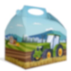 Voor kleine tractorliefhebbers is deze feestbox een perfect onderdeel van het kinderfeestje! Vul het met lekkernijen en verrassingen. Eenvoudig te monteren, gemaakt van karton en heeft de afmetingen 20 x 16 cm. Verkocht per stuk.