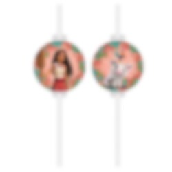 4 kartonnen rietjes met charmante afbeeldingen van Vaiana. De rietjes zijn ongeveer 21 cm lang en de motieven hebben een diameter van ongeveer 6,5 cm.