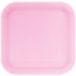 14 vierkante borden in een mooie lichtroze kleur. De borden zijn gemaakt van milieuvriendelijk papier en meten 22,2 × 22,2 cm.