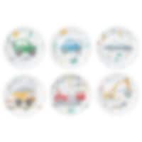 6 papieren bordjes met afbeeldingen van kleurrijke voertuigen, perfect voor een kinderfeestje met een voertuigthema! De bordjes hebben een diameter van ongeveer 18 cm.