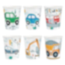 6 papieren bekers met kleurrijke voertuigmotieven, perfect voor een leuk kinderfeestje met een voertuigthema! De bekers zijn 9 cm hoog en hebben een inhoud van 220 ml.