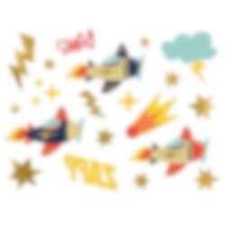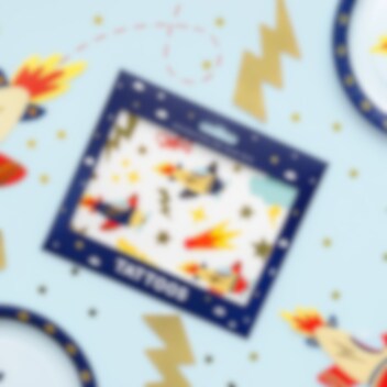 11 Neptattoos voor kinderen voor eenmalig gebruik in verschillende maten, allemaal met leuke vliegtuiggerelateerde motieven. Als je een kinderfeestje plant met een vlieg- of voertuig thema, dan zijn deze leuk om als verrassing te geven aan je vrienden in de uitdeelzakjes of de feestbox.