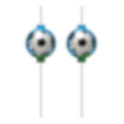 4 papieren rietjes met schattige voetbalafbeeldingen. De rietjes zijn ongeveer 21 cm lang en de afbeeldingen hebben een diameter van ongeveer 6,5 cm.
