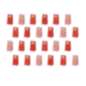 Super leuke adventskalender met rode papieren zakjes en bijgevoegde gouden stickers in de vorm van sterren met de nummers 1 tot 24. Verras de persoon waar je om geeft met een zelfgemaakte kalender en dingen waarvan je weet dat ze er blij van worden.