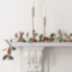 Geef de kerstsfeer extra glans met onze elegante bloemenslinger met hulstbladeren en rode bessen. Deze slinger straalt een klassieke kerstsfeer uit en wordt een mooi detail in je huis tijdens de feestdagen. Het is perfect om over de open haard te draperen, langs de trap of als een sfeervolle tafeldecoratie. Combineer de slinger met andere kerstversieringen om een warme en uitnodigende kerstsfeer te creëren. Lengte 180cm.