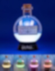 Hele coole sfeerlamp in de vorm van een Polyjuice Elixir uit de Harry Potter serie. Laat je bewonderen door deze lamp die als hij brandt in alle kleuren van de regenboog schijnt. Plaats de lamp op de salontafel, het nachtkastje of waarom niet op de boekenplank om een gezellige sfeer met stijl te creëren.