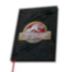 Notitieboekje in zwarte kleur met stijlvolle Jurassic Park-motieven.