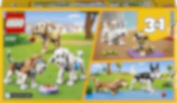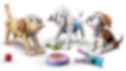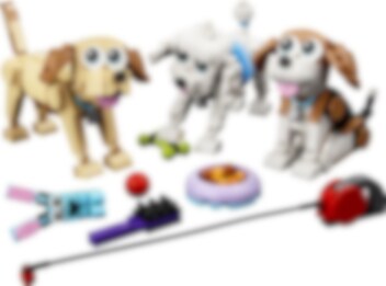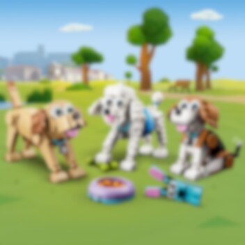 Dit is de ultieme bouwset voor hondenliefhebbers! Bouw een beagle, een poedel en een labrador voor leuke avonturen in het park met een bal en een riem. Vervolgens kun je ze ombouwen tot een speelse schnauzer en een mopshond of ze veranderen in een husky en een langharige teckel. Aan jou de keuze met deze schattige 3-in-1 set.