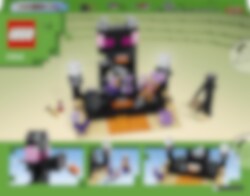Minecraft® confrontaties zijn nog nooit zo spannend geweest als in LEGO® Minecraft De Eindarena (21242). Spelers vanaf 8 jaar zullen al hun Minecraft vaardigheden nodig hebben om de actie in deze leuke set te overleven. Duels en avonturen Een End strijder en een drakenboogschutter komen bij elkaar voor een confrontatie in de Eindarena. De strijders zijn uitgerust met harnassen en wapens, maar er zijn ook andere gevaren die ze moeten trotseren. Een druk op de knop schiet lavablokken uit de bek van het standbeeld van de Enderdraak dat boven de arena uittorent en de beweegbare vloer schuift uit elkaar om een poel van lava onder de voeten van de strijders te onthullen. Er zijn extra speelmogelijkheden met 2 bekende Minecraft mobs – een enderman en een shulker – en accessoires uit de game, waaronder een gouden wortel en een toverdrankje. Voor digitaal plezier heeft de LEGO Builder app intuïtieve zoom- en draaifuncties waarmee kinderen hun model kunnen visualiseren terwijl ze het bouwen.