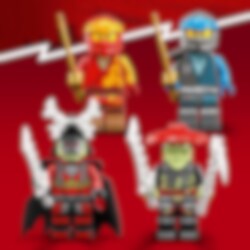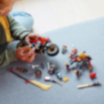 Jonge bouwers van 7 jaar en ouder en fans van coole voertuigen kunnen hun eigen fantasieduels naspelen waarin goed het opneemt tegen kwaad met deze Kai's Mech Rider EVO (71783) speelset vol actie. De set bestaat uit een verstelbare mecha en een coole motor, die kan worden geüpgraded tot een groter model door goudkleurige zijpanelen en een groot gouden zwaard toe te voegen. Strijd tussen goed en kwaad Deze bouwset bevat 4 minifiguren: Kai en Nya, beiden bewapend met zwaarden, Bottenkoning met zijn eigen zwaard en Bottenjager met een bottenhouweel en een zwaard. Als ze in de uitdaging slagen, worden kinderen beloond met een verzamelvaandel voor Concentratie die kan worden bevestigd aan de ninjamotor. Een leuke digitale ervaring voor LEGO bouwers Laat de LEGO Builder app jou en je kind begeleiden tijdens het eenvoudige en intuïtieve bouwavontuur. Zoom in en draai modellen in 3D, bewaar sets en houd je voortgang bij.