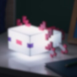 Ervaar de magische wereld van Minecraft met deze schattige Axolotl-lamp! De lamp is 21 cm hoog en heeft twee verschillende lichtstanden: kleurselectie en kleurpulserend. Met vijf verschillende kleuren creëer je een sfeervolle sfeer in je kamer.