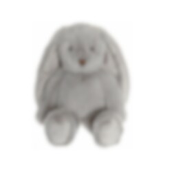 Zacht speelgoed met een afbeelding van een grijs konijn met lange pluizige oren. Het konijn heeft een zijdezachte vacht, een bruine garenneus en donkerbruine geborduurde ogen. De knuffel is 30 cm hoog en wasbaar op 40 graden. Goedgekeurd en CE-gemarkeerd volgens EN71.