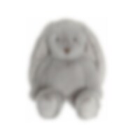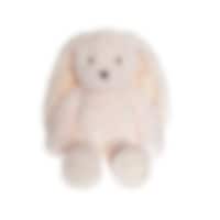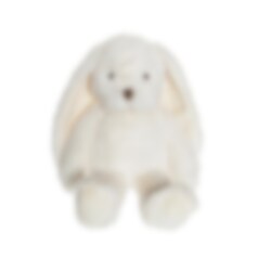 Schattig knuffelkonijn met witte zijdeachtige vacht, een bruine garenneus en donkerbruine geborduurde ogen. Het konijn is 30 cm hoog en is wasbaar op 40 graden. Goedgekeurd en CE-gemarkeerd volgens EN71.