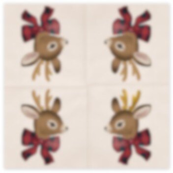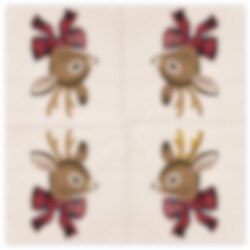 De servetten tonen een schattig rendier met gouden geweitjes en een geruite strik in klassieke kerstkleuren. Ze zijn gemaakt van zacht, absorberend papier en hebben prachtige details van goudfolie die voor een luxe uitstraling zorgen.