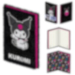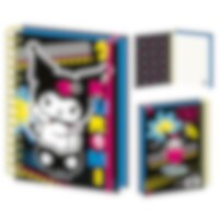 Laat je stijl zien met dit exclusieve Kuromi-notitieboek in A5-formaat! De kaft is bekleed met zachte zwarte pluche en heeft verhoogde 3D-details van Kuromi, het stoerste karakter uit de wereld van Sanrio.