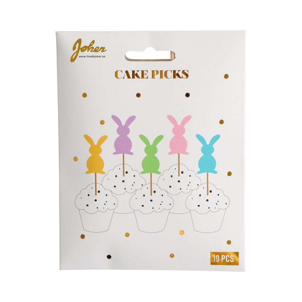 De set bevat 10 cake toppers met paashazen in meerdere verschillende kleuren die uw gebak snel extra mooi maken. Perfect voor de paaskoffie, het paasfeest of wanneer u het bakken in de lente wat extra decoratief wilt maken.